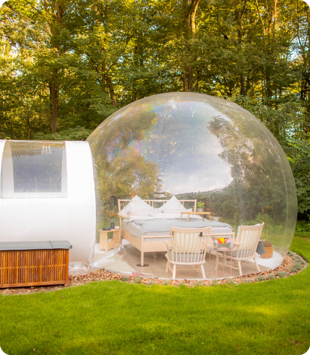 Du träumst von Freiheit, Ruhe und Natur und möchtest ein außergewöhnliches Abenteuer ganz in deiner Nähe erleben? Dann bist du bei uns genau richtig! Book a Bubble ist das Buchungsportal für einzigartige Übernachtungen in den Bubble Tents von Bubble Tent Deutschland. Mit nur wenigen Klicks sicherst du dir deine ganz persönliche Auszeit – fernab vom Massentourismus. Jede Übernachtung wird zu einem besonderen Erlebnis, das du so schnell nicht vergessen wirst. Finde jetzt deine Lieblings-Bubble und lass dich verzaubern!