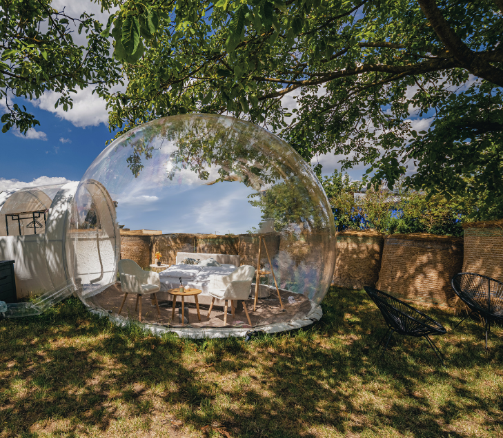 Luxuriös, naturnah und einzigartig – eine Übernachtung in einem Bubble Tent ist weit mehr als ein gewöhnlicher Urlaub. Anders als beim klassischen Camping bieten unsere eleganten und komfortablen Bubbles großzügigen Raum und stilvolle Gemütlichkeit. Dank der vollständig transparenten Hülle verschwimmen die Grenzen zwischen Innen- und Außenwelt, sodass du dich eins mit der atemberaubenden Natur fühlst, die dich umgibt. Und wenn die Nacht hereinbricht, erwartet dich ein unvergesslicher Blick auf den funkelnden Sternenhimmel – mehr als nur 5 Sterne!