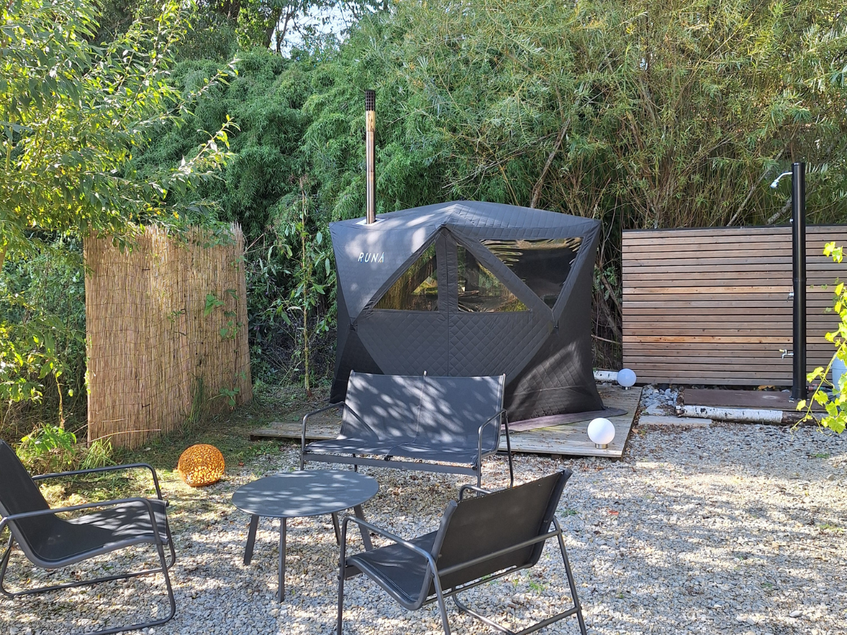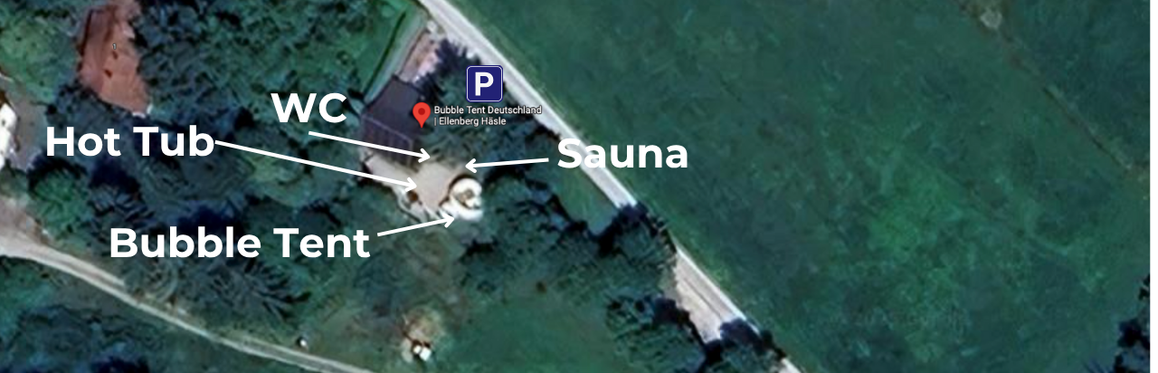Das komplette Gelände rund um die Bubble ist privat und nur für euch. Ihr habt den Bereich mit Hot Tub, Grill, Dusche und Toilette ganz allein.