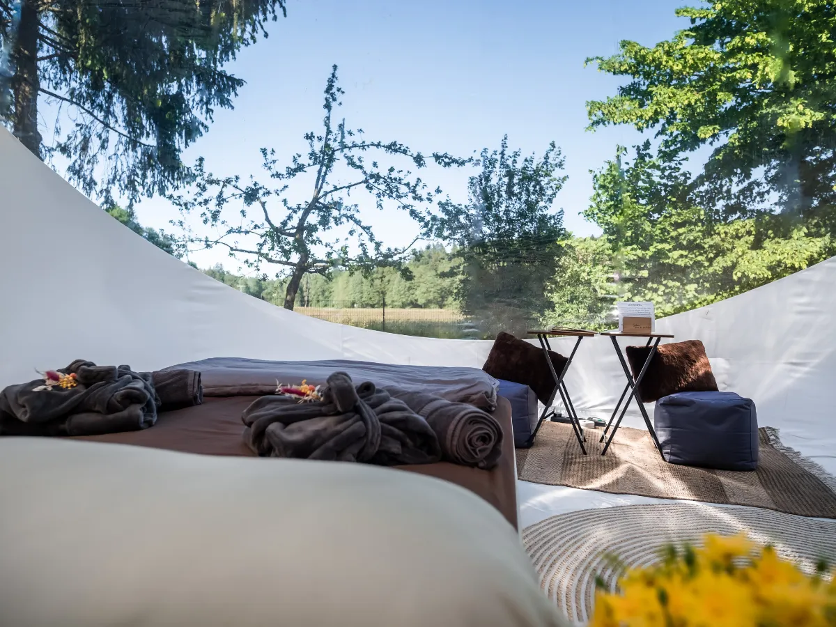 Wir hatten schöne und erholsame 2 Nächte im Bubbel Tent mit Sauna und Whirlpool. Wir können dieses Erlebnis jedem empfehlen – wir haben den Aufenthalt wirklich sehr genossen. Von Bademäntel bis Heizdecken war alles da, gute Ausstattung im Zelt , es wurde an alles gedacht. Wir haben uns sehr wohl gefühlt.