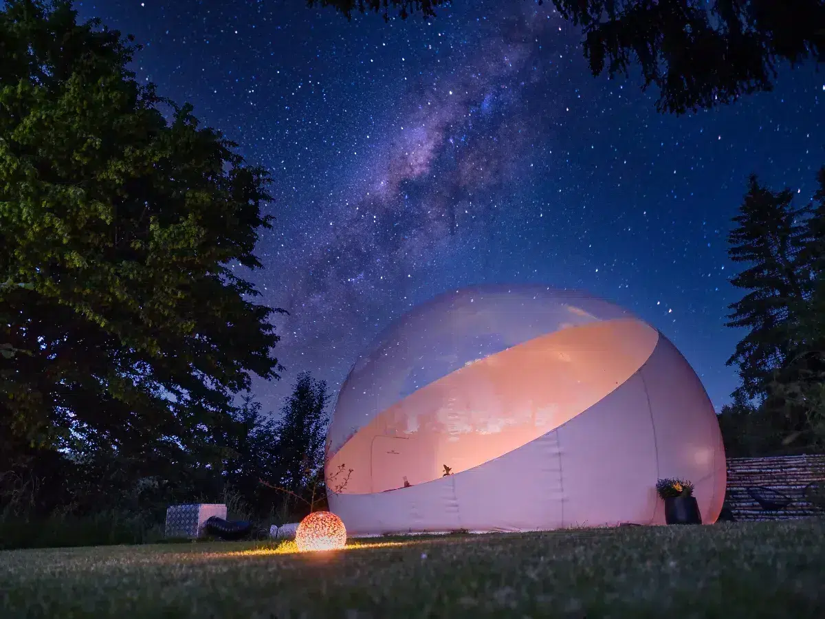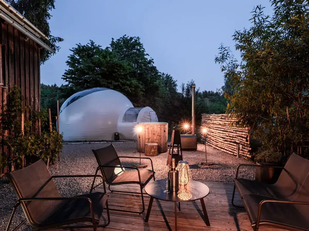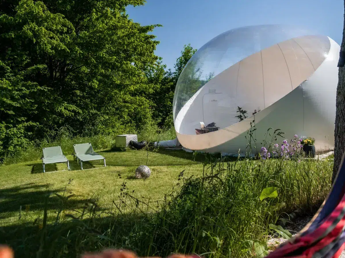 Das Bubble Tent Ellenberg vereint Natur, Entspannung und ein kleines Abenteuer zu einem unvergesslichen Erlebnis. Eingebettet zwischen sanften Hügeln, grünen Wiesen und alten Wäldern genießt ihr hier eine Auszeit voller Ruhe und Weitblick.