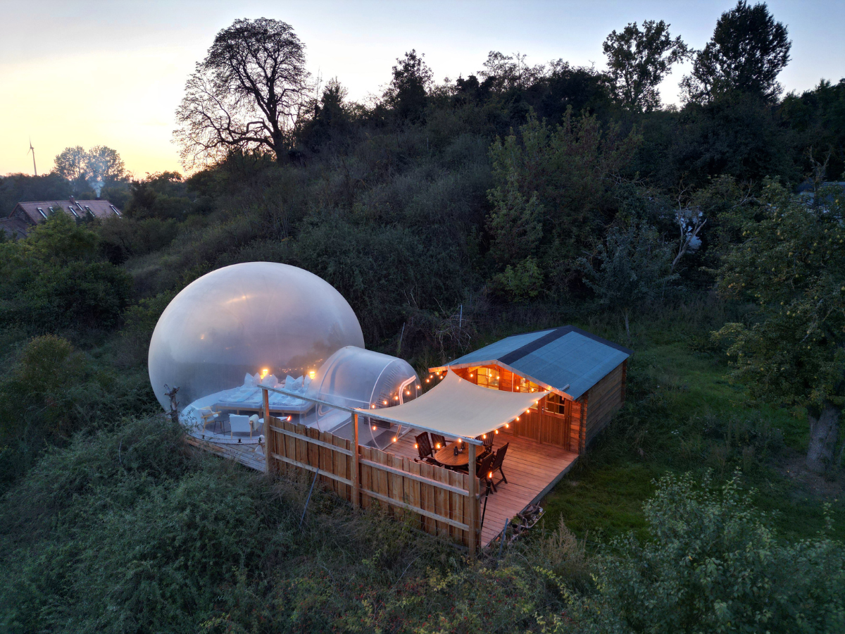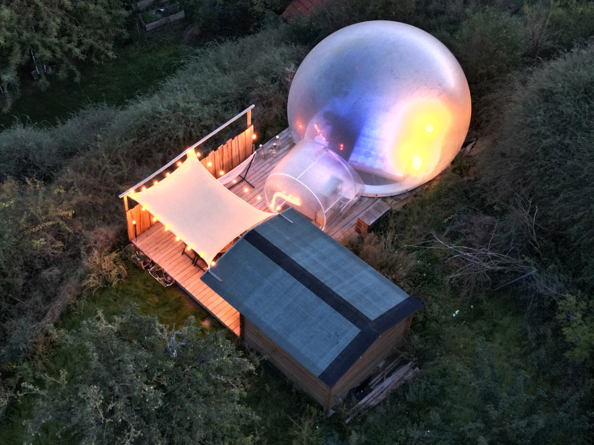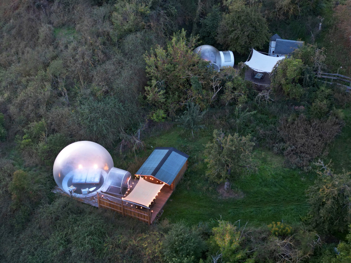 Das Bubble Tent steht auf einem eigenen, eingewachsenen Grundstück.
