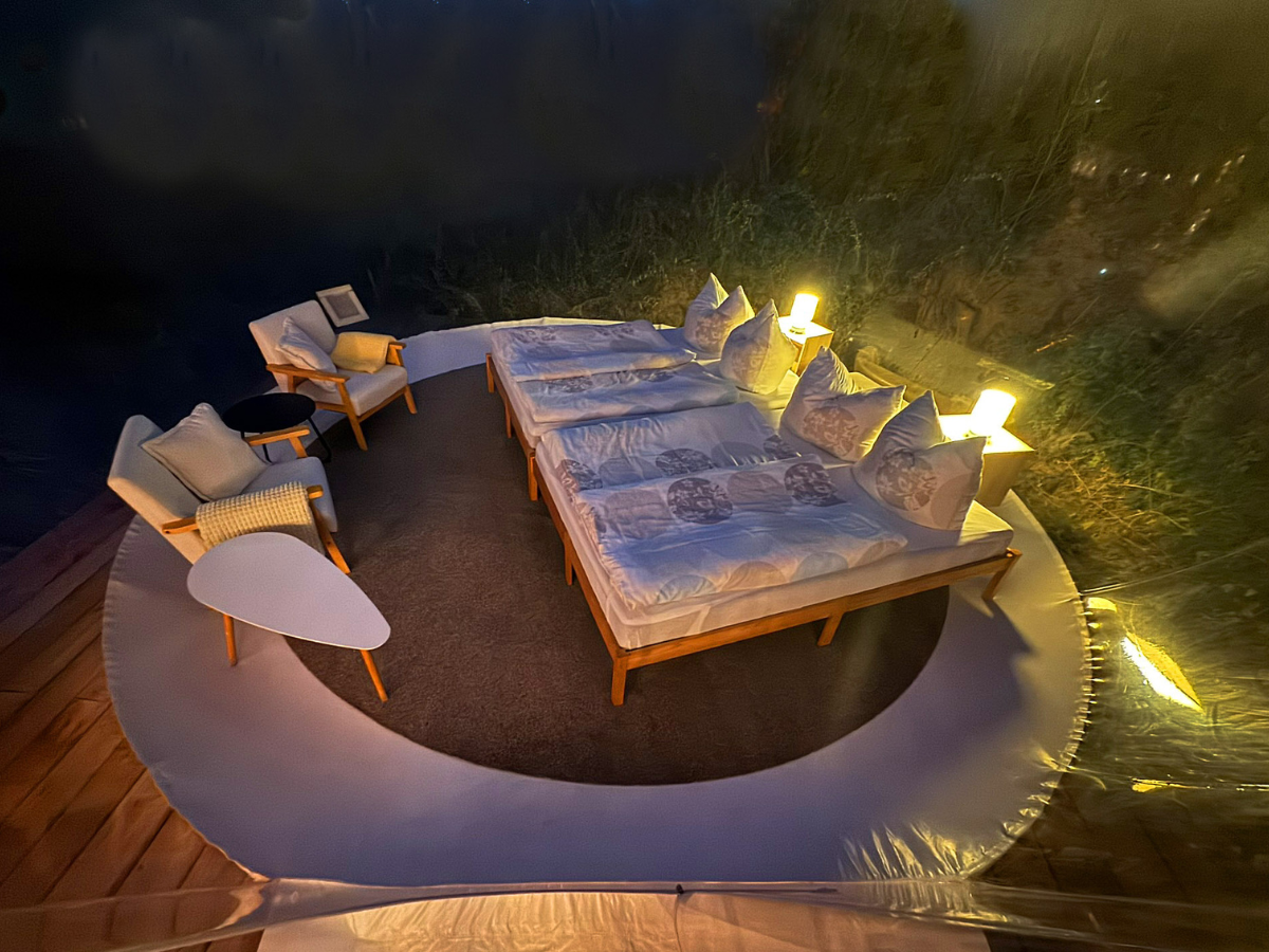 Die Natur in ihrer Ursprünglichkeit, Ruhe und Schönheit zu genießen möchten wir unseren Gästen durch den Aufenthalt in unseren Bubble Tents ermöglichen. Genießen sie den Sonnenaufgang am Morgen, den langsam über den Horizont aufsteigenden Mond am Abend und die hell leuchtenden Sterne in der Nacht.