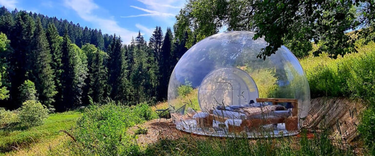 Luxurious, close to nature and unique – an overnight stay in a bubble tent is far more than just an ordinary vacation. Unlike traditional camping, our elegant and comfortable bubbles offer generous space and stylish coziness. Thanks to the completely transparent shell, the boundaries between the inside and outside world become blurred, making you feel at one with the breathtaking nature that surrounds you. And when night falls, an unforgettable view of the sparkling starry sky awaits you – more than just 5 stars!
