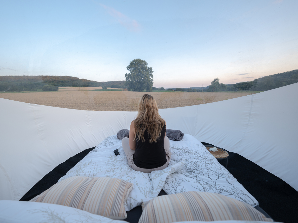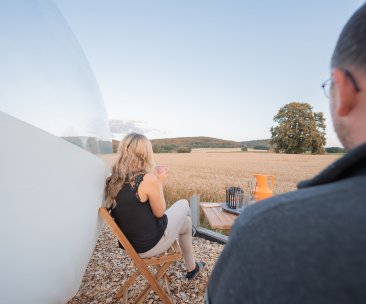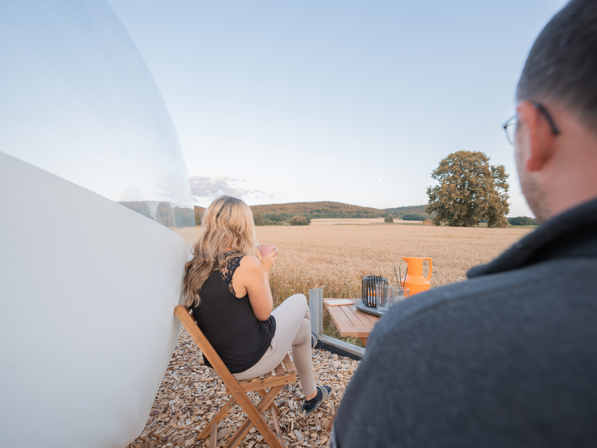 Stellt euch vor, ihr öffnet die Augen und seid umgeben von der grenzenlosen Weite eines zauberhaften Bubble Tents. Unser Standort im Altmühltal/Greding bietet genug Raum, um zusammen zu träumen. Das Bubble Tent ist mit einem bequemen Queensize-Bett mit Heizdecken ausgestattet, von dem man gemütl ......