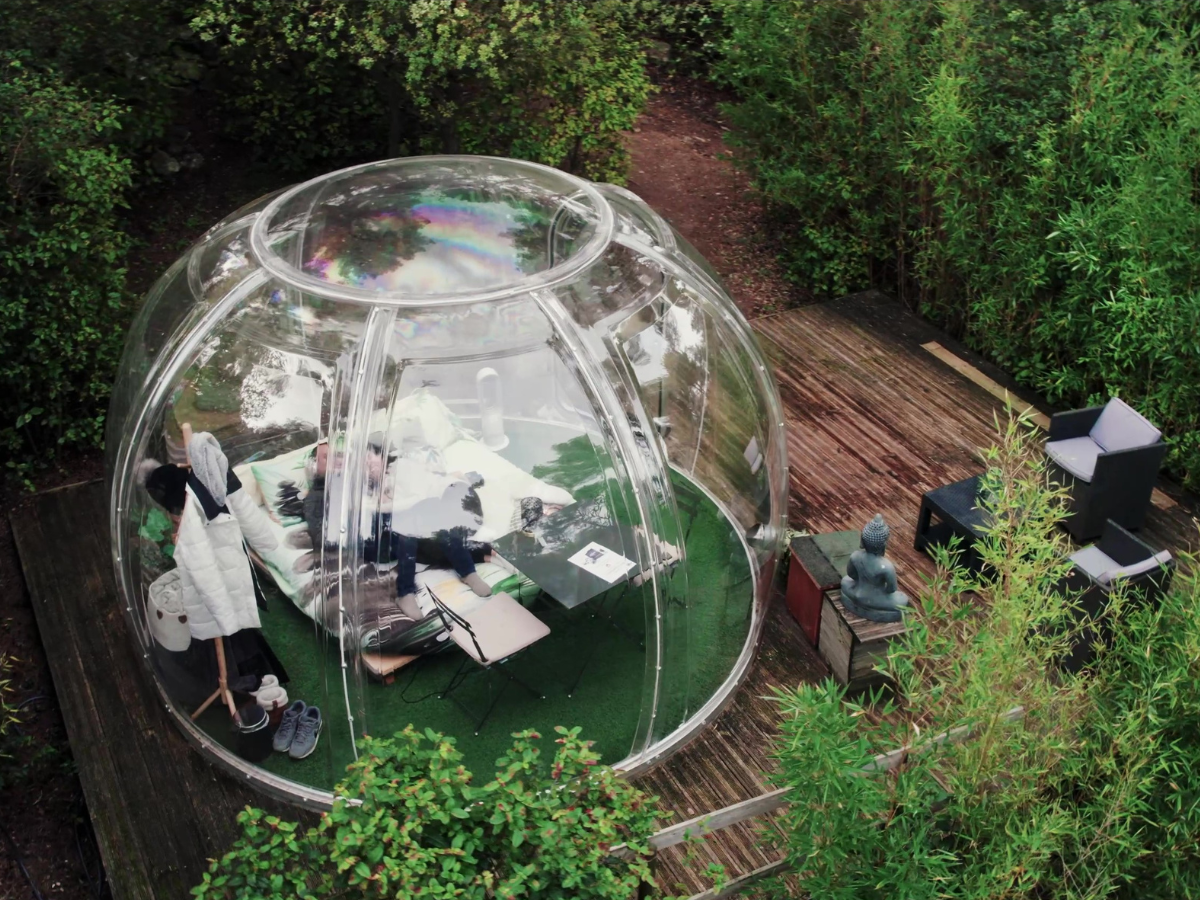 Willkommen im Bubble Tent Attrap’Rêves Bulle Zen, eurer persönlichen Oase in Allauch, wo Traum und Realität auf einzigartige Weise verschmelzen. Gelegen am idyllischen Chemin de la Ribassière, bietet dieses besondere Zelt ein außergewöhnliches Erlebnis inmitten der Natur. Euer gemütlicher Rückzugsort, ausgestattet mit einem komfortablen Doppel-Futon-Bett, flauschigen Kissen und warmen Decken, verspricht romantische Nächte unter dem Sternenhimmel.