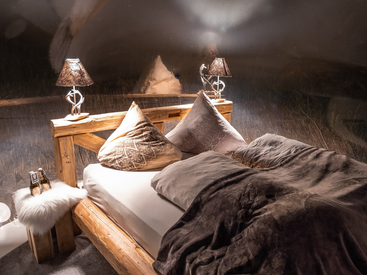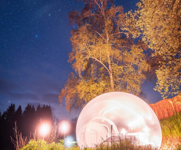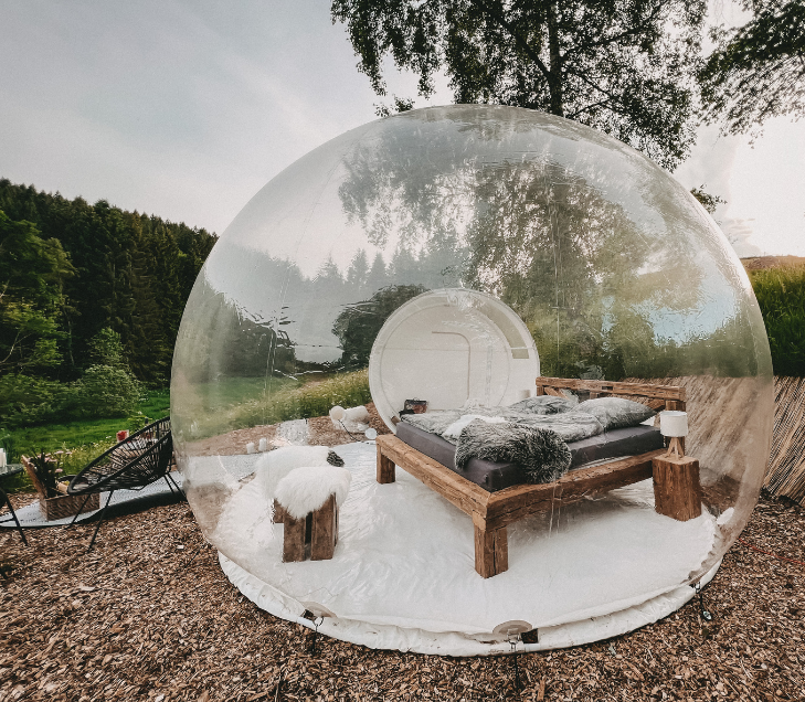 Im Bubble Tent Furtwangen ist Platz für 2 Erwachsene + 1 Kind, es wird aber aus Platzgründen kein zweites Bett zur Verfügung gestellt. Nach Bedarf muss ggf. selbst eine schmale Isomatte o.Ä. für die dritte Person mitgebracht werden.