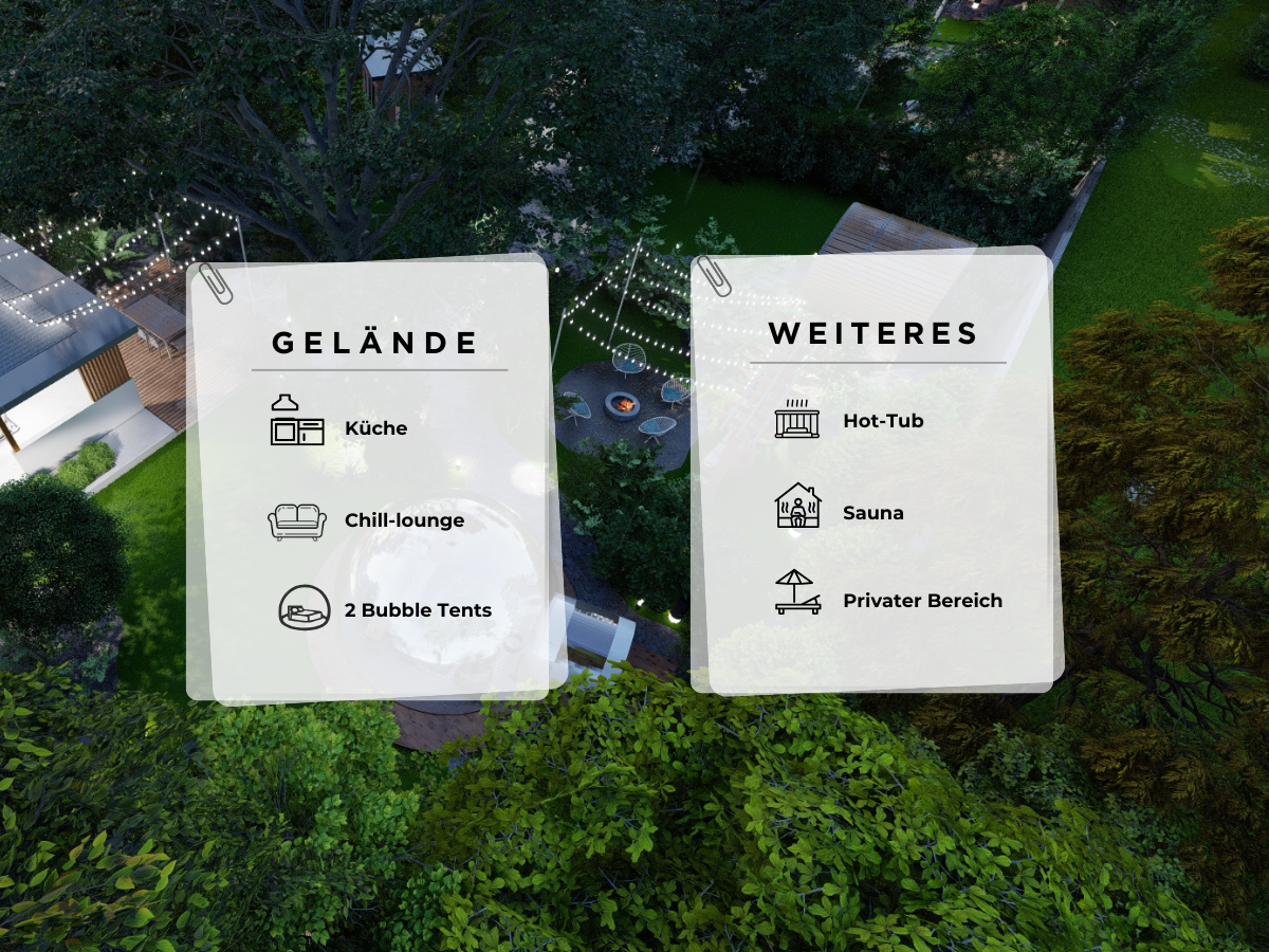 - Ab insgesamt 4 Personen ist das zweite Bubble Tent verpflichtend – unabhängig davon, ob es sich um Erwachsene oder Kinder handelt (z. B. 2 Erwachsene + 2 Kinder).