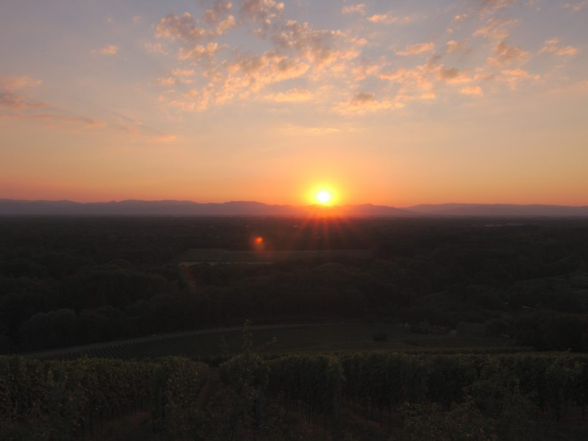 Das Bubble Tent Winzerhof Vogesen liegt am Winzerhof bei Sasbach im Kaiserstuhl, auf einer Hochebene mit einmaliger Rundumsicht: bis in die Vogesen, über die Rheinebene, zum Schwarzwald und über den Kaiserstuhl. Die Lage ist offen, ruhig und bewusst abgeschirmt – genau richtig, wenn du dem Alltag entfliehen willst, ohne komplizierte Anreise oder lange Planung.