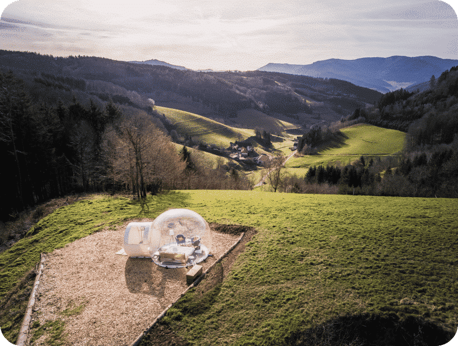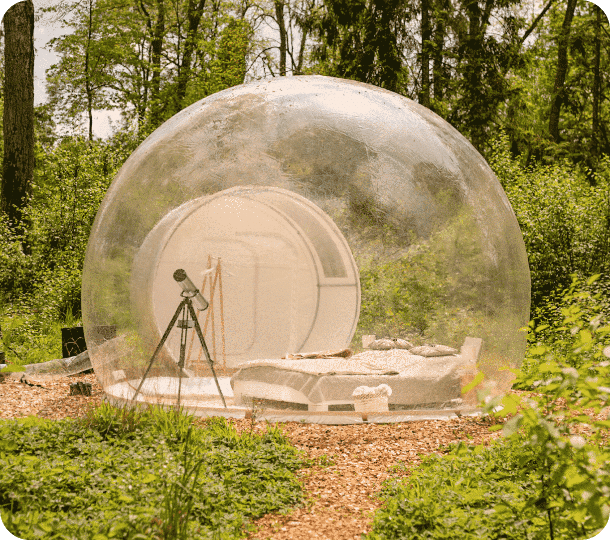 Im Bubble Hotel seid ihr mittendrin und doch ganz für euch. Genießt die Aussicht auf die Landschaft aus der komplett durchsichtigen Bubble und eine Erlebnisübernachtung der ganz anderen Art. Bubble Tent Deutschland bietet euch das perfekte Zusammenspiel aus klassischem Campingurlaub und dem Luxus eines Hotels inmitten herrlichster Natur. Lasst den Alltagsstress hinter euch und genießt eine wunderschöne Auszeit zu zweit oder mit der ganzen Familie.